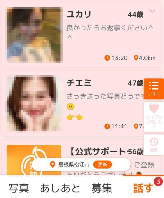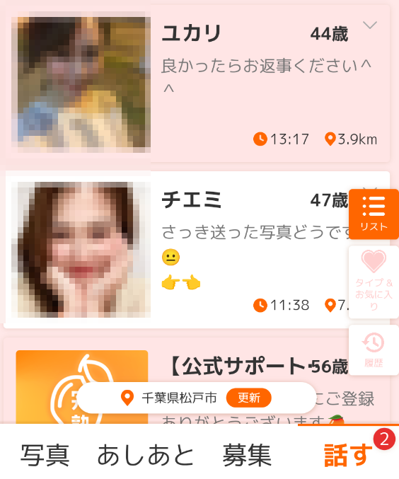 よく見比べてみるとわかると思いますが、どの居住地で登録しても、メッセージを送ってくる女性との距離が近く表示されていることがわかると思います。